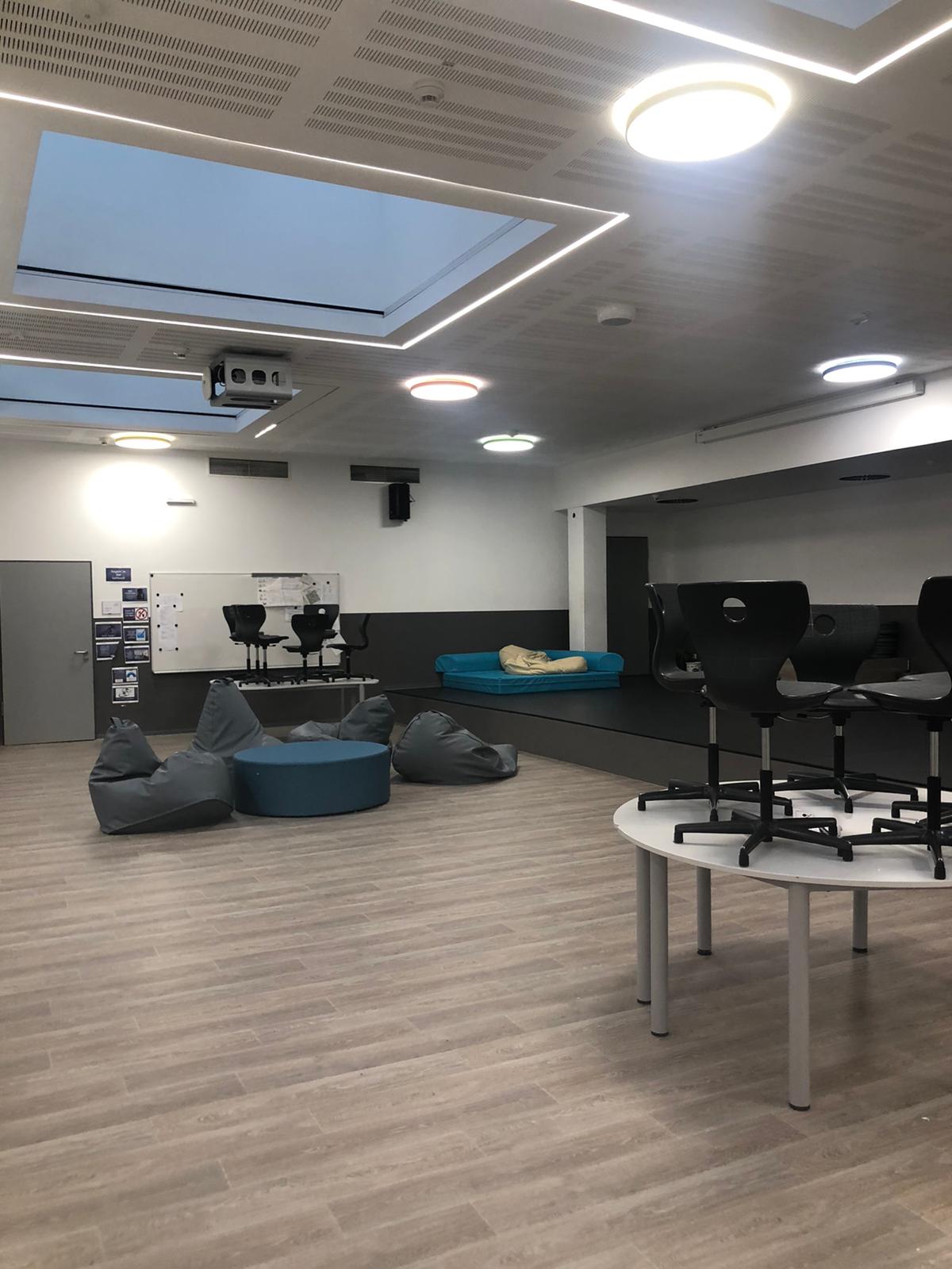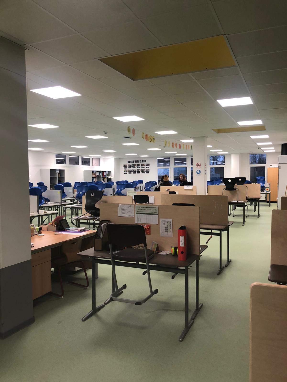 Das innovative Raumkonzept besteht aus Arbeits- und Kooperationsfläche sowie Inputräumen. Diese Gestaltung eröffnet den Schülerinnen und Schülern eine ruhige Lernumgebung durch eine Bibliotheksatmosphäre und mit eigenem Arbeitsplatz. Auf der Kooperationsfläche wird ein bewusstes Miteinander geschult.